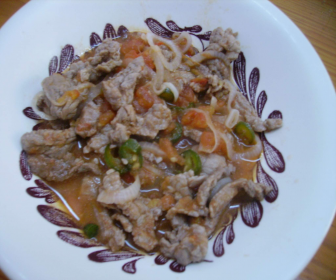 - En una cacerola se fríe el jitomate picado con los chiles y sal al gusto por unos 2 o 3 minutos, se le agregan los bisteces con la cebolla y se siguen friendo hasta que se cosa bien la carne